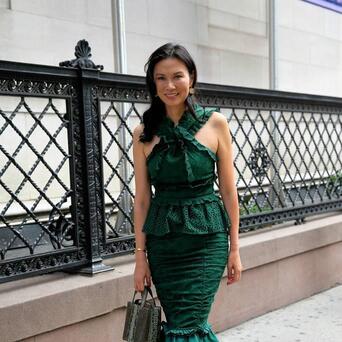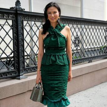 一袭墨绿色挂脖裙优雅迷人股票配资炒股看配资,尽显女性魅力!
